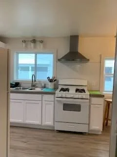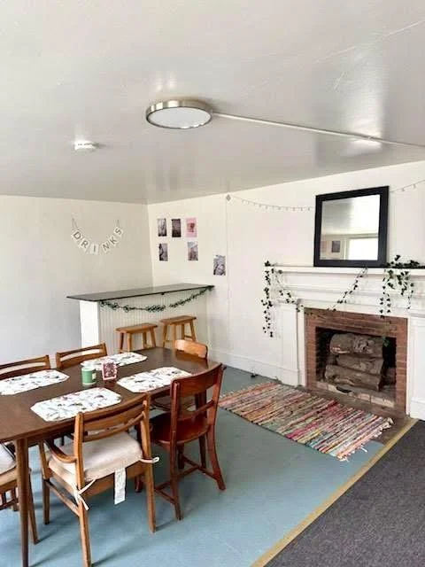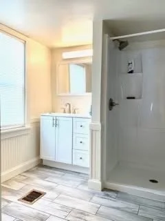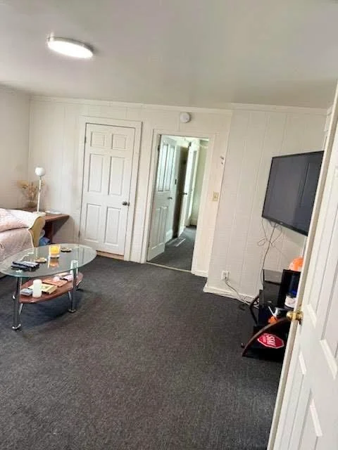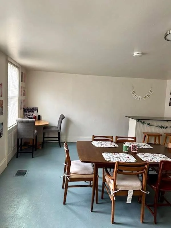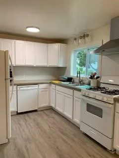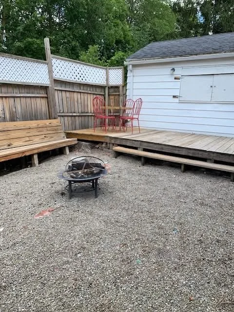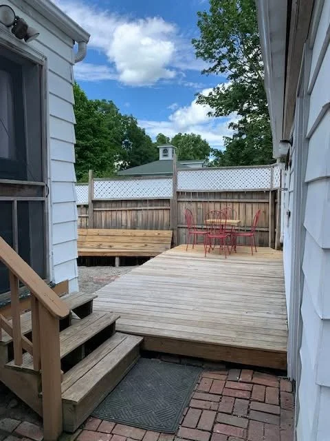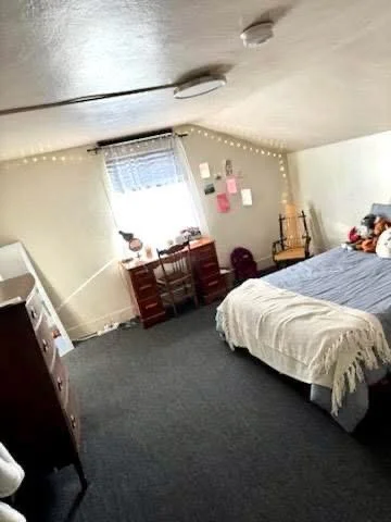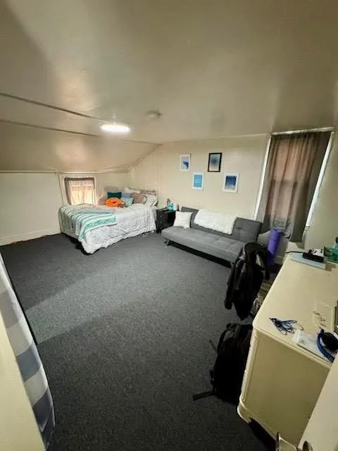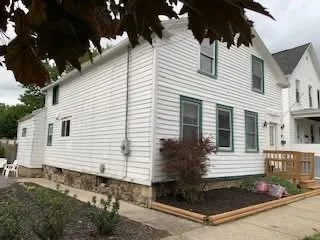 4 bedrooms, 2 full baths, washer and dryer, dishwasher, refrigerator and TV, huge fenced in back yard with built in furniture, BBQ grill, 2 car garage set up as hangout area, off street parking at house and parking on Court St across from campus parking, just remodeled